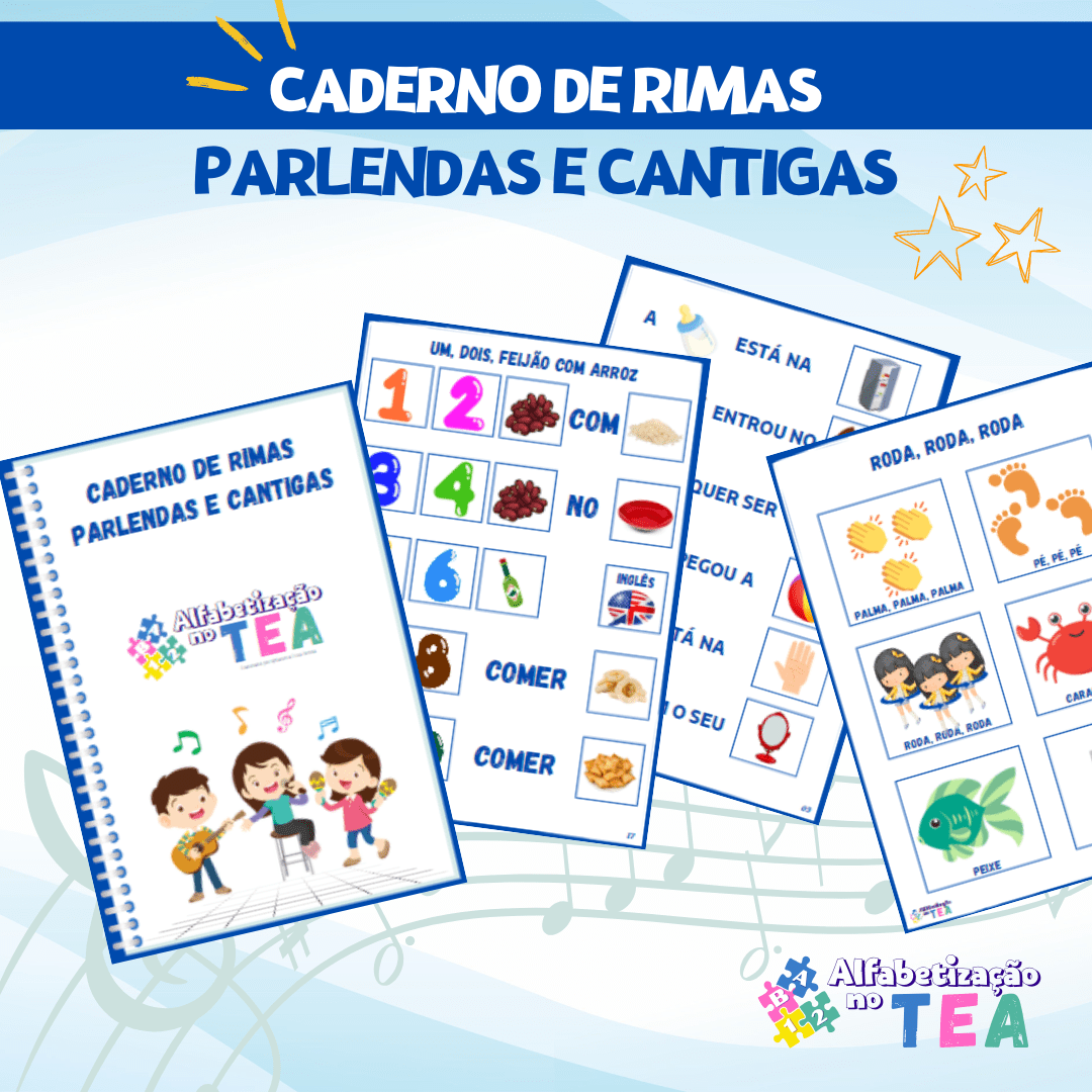 Foi criado para ajudar no processo da alfabetização e desenvolvimento da leitura. Ao reunir parlendas e canções, o caderno oferece uma abordagem lúdica e envolvente para o aprendizado de palavras, frases e ritmos.